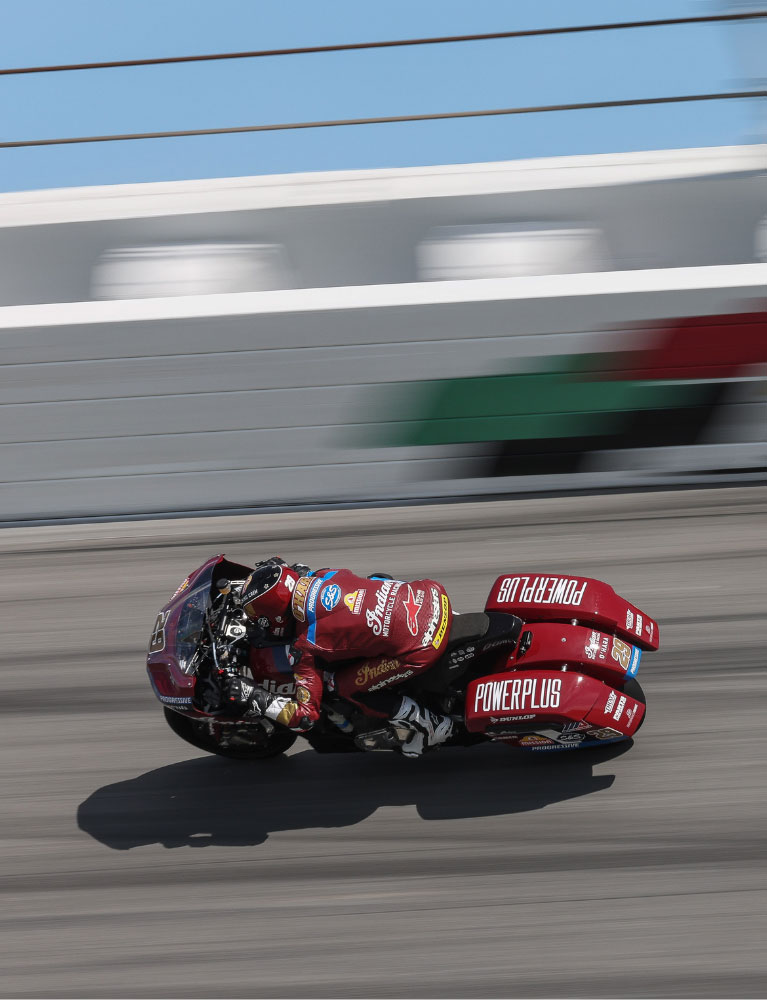 1909'da Indianapolis Motor Speedway'de düzenlenen ilk motosiklet yarışını kazandık. 1937'de Ed Kretz, Indian Sport Scout ile ilk Daytona 200 yarışını kazandı. Orijinal Wrecking Crew, savaş sonrası yarış sahnesine damgasını vurdu. 2010'lu yıllarda Flat Tracking yarışlarıyla bu geleneği sürdürdük. Günümüz yarışçıları da Bagger Racing League Europe ve MotoAmerica King of The Baggers serilerinde aynı şeyi yapıyor. Farklı dönemler. Aynı sonuç.